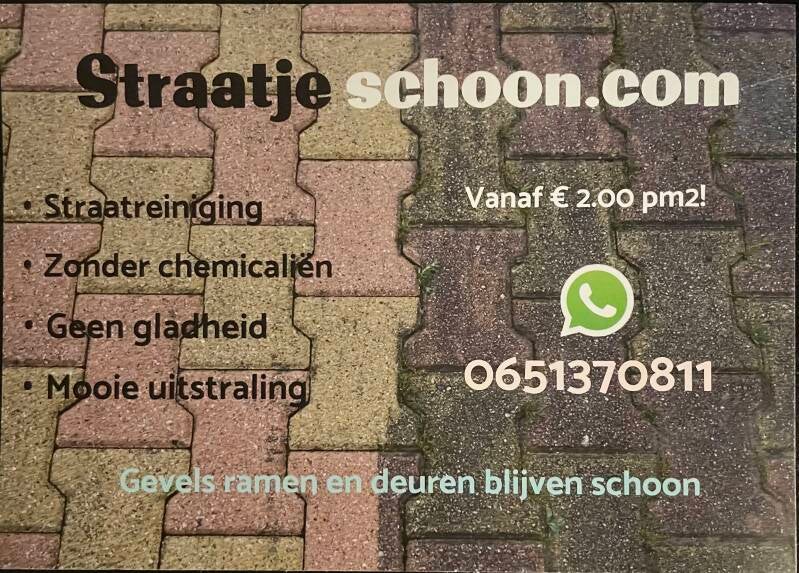 De naam zegt het al, u wilt uw straatje weer schoon. Wij kunnen dat voor u verzorgen met onze speciale hogedruk terrasreiniger.